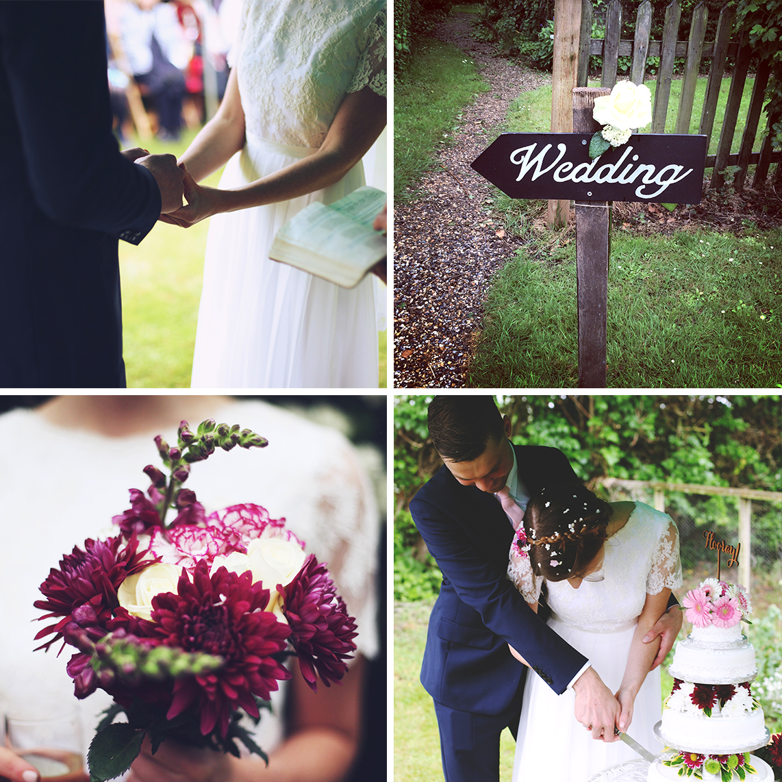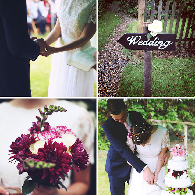 It was great! It was a pretty relaxed affair back in the beautiful Norfolk countryside where I grew up. We had the ceremony in my parents garden, followed by canapés, cake and beer from my Dad's brewery (also based in the garden!). The ceremony was followed by a party in a local barn, with lots more beer, a hog roast and a live swing band! The wedding was very homemade, my mum made jam as wedding favours and grew all the flowers, my cousin decorated the cake and made the bouquets, a friend took the photographs, friends and family chipped in with salads and desserts, and my wonderful bridesmaid made my wedding dress! Here are some photos from the day (oh and a couple of cat photos...it would be rude not to)