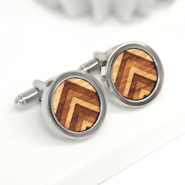 Wooden 3D Chevron Cufflinks