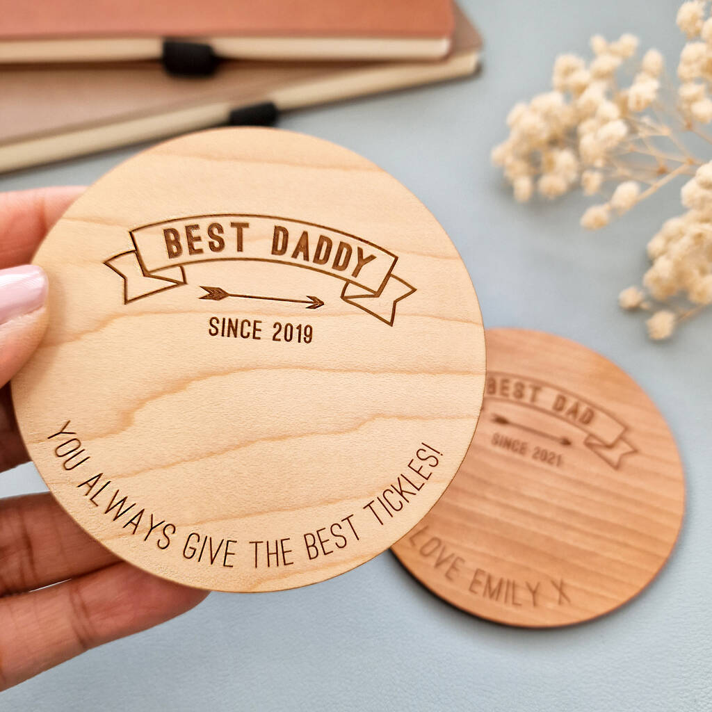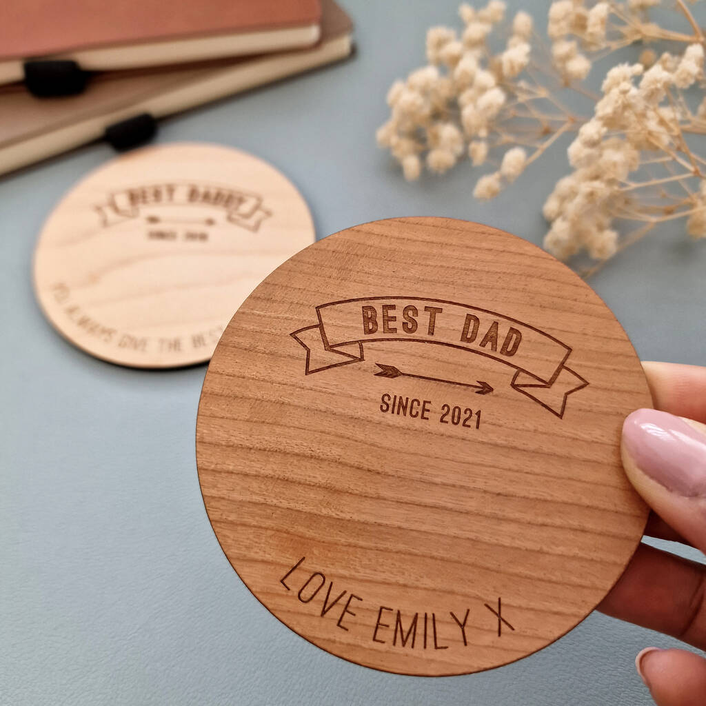 / Personalised Wooden Best Dad Coaster, Father's Day Gift
