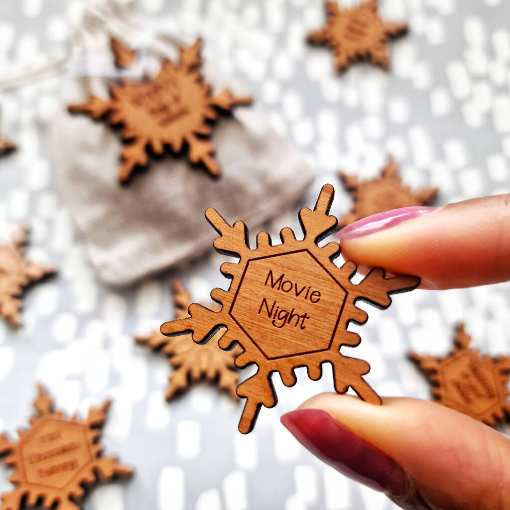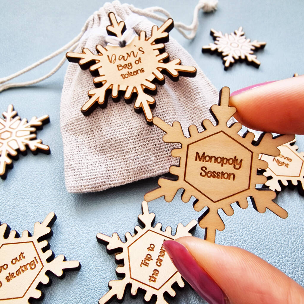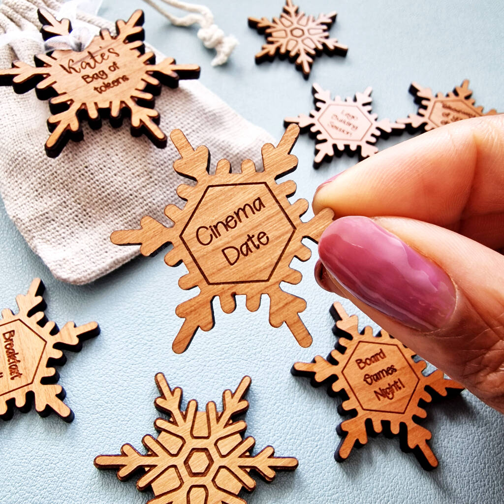 / Wooden Personalised Couples Christmas Snowflake Tokens