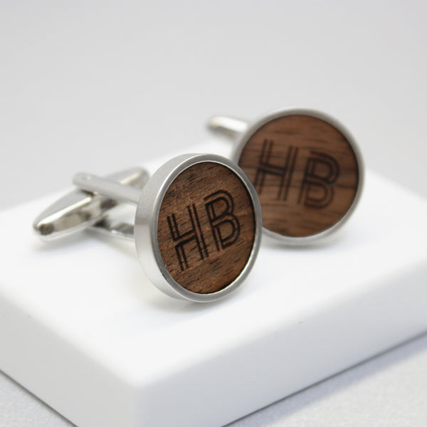 Geometric Initial Walnut Wood Cufflinks