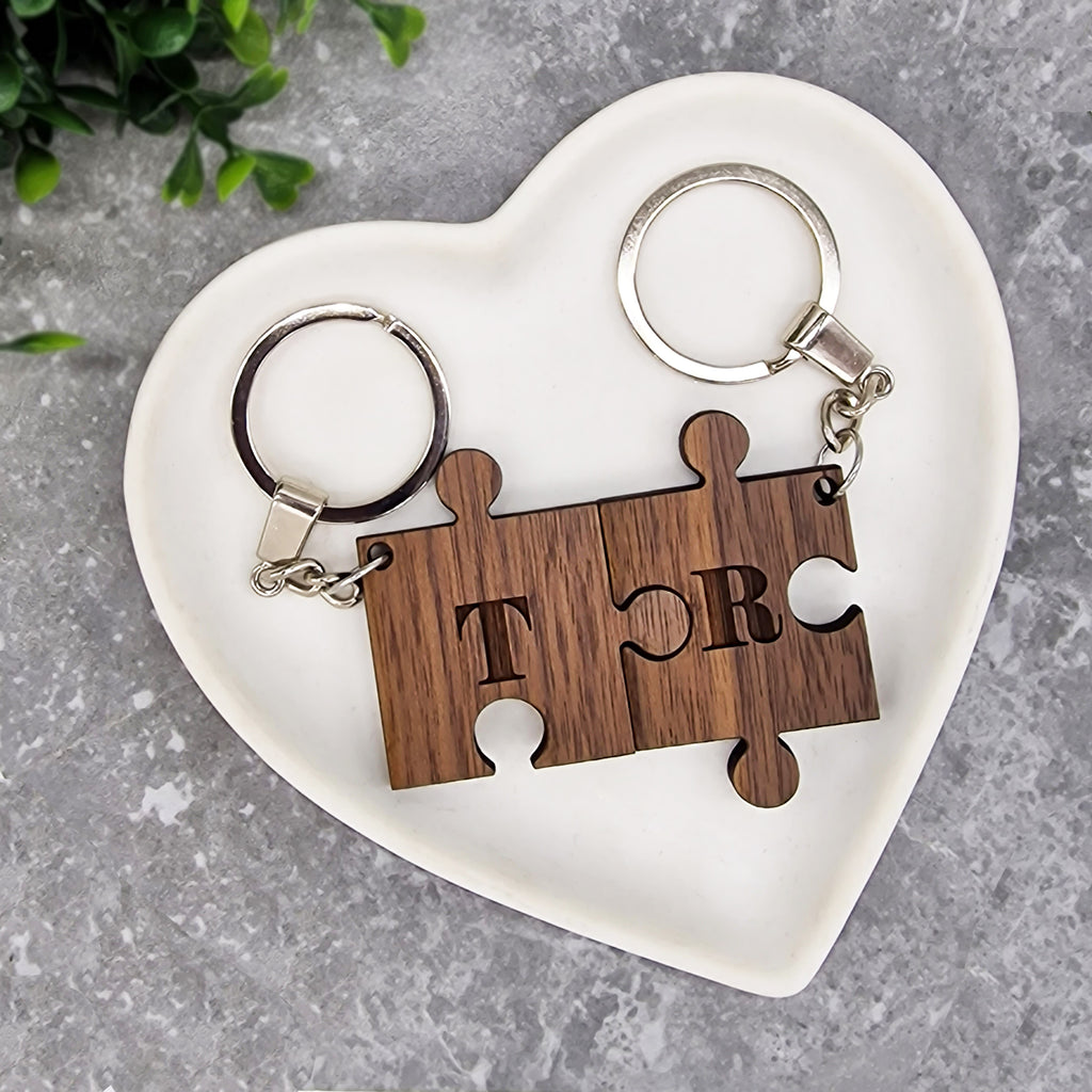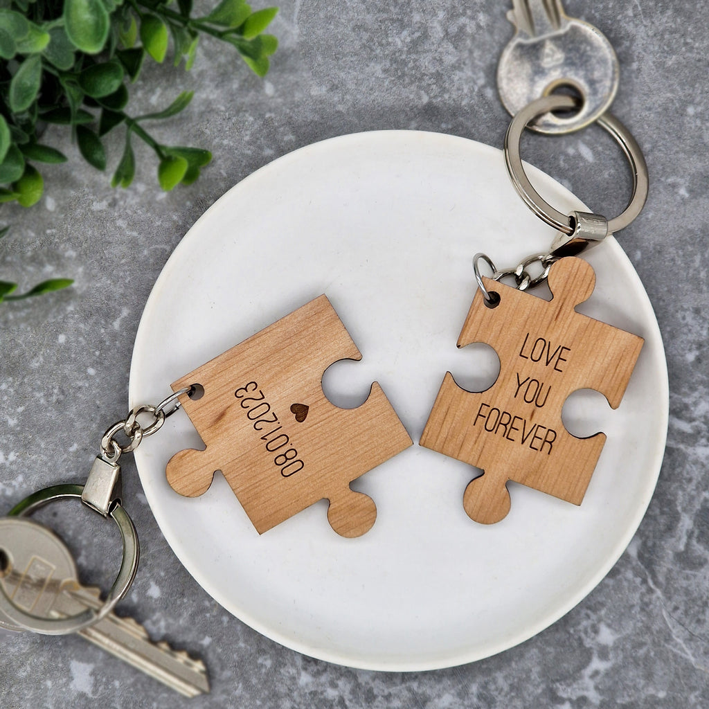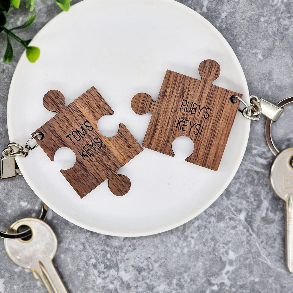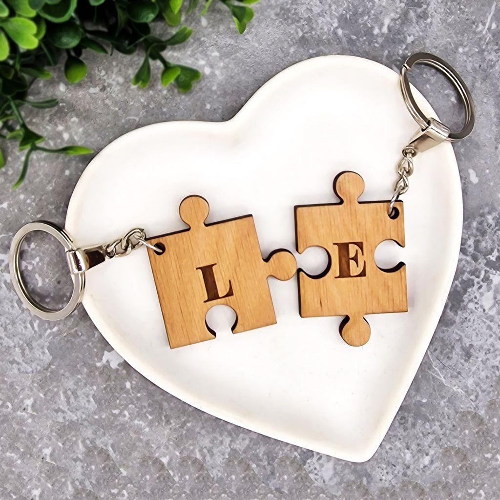 Personalised Set of 2 Puzzle Keyrings, Couple Jigsaw Keyring